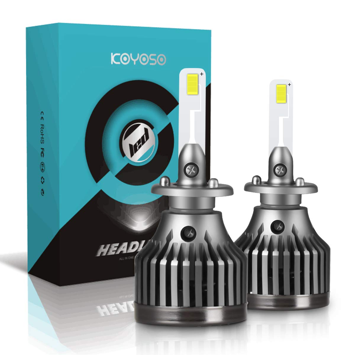 koyoso 60w 12000 lumens led head lamps pack 2 h1 led headlight bulbs 6000k extremely bright cps chips conversion kit automotive car parts
